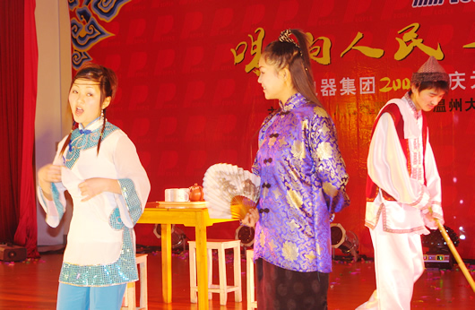 晚會在輕松愉快的音樂中拉開了序幕。主持人黃兆超、林樂丹分別介紹了各位領導和嘉賓。蒞臨現(xiàn)場的有柳市鎮(zhèn)總工會主席紹春微、長虹村黨支部副書記鄭銀余、溫州大學甌江學院副院長吳一琦以及人民電器集團監(jiān)事長包巨文、進出口公司總經(jīng)理葉向宇、儀器儀表公司董事長鄭緯宇等有關部門領導。